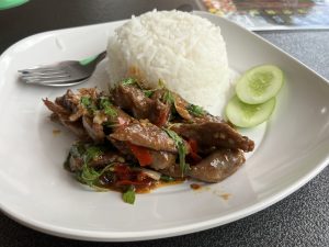 途中マンゴージュースホテル荷物預け ストリートフードの鴨ライスとbeer 隣の公園コーヒー