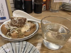 ラウンジにてビール 長浜ラーメンと餃子 居酒屋あかり(オール韓国人)